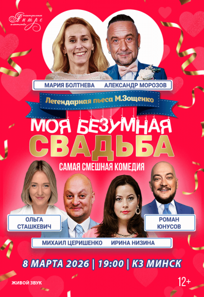 Спектакль "Моя безумная свадьба" (из России) М. Болтнева, А. Морозов, О. Сташкевич, М. Церишенко, И. Низина, Р. Юнусов