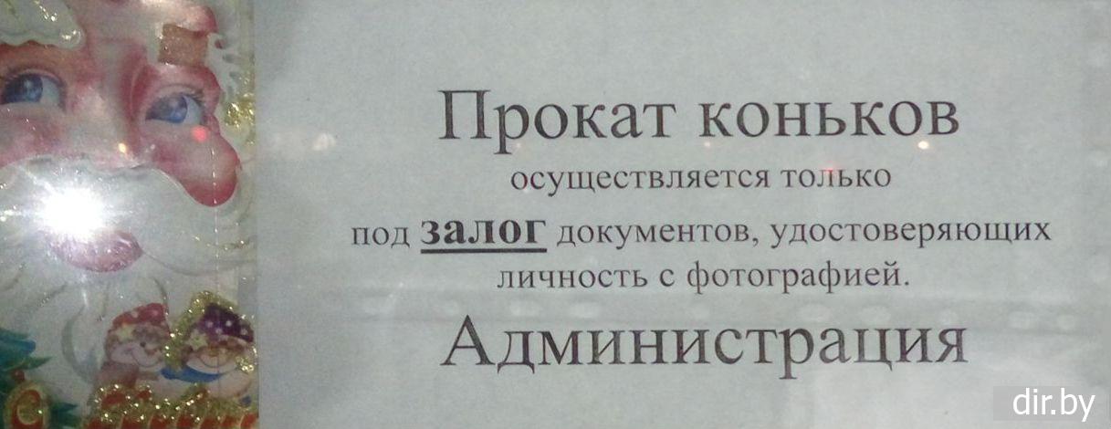 Прокат коньков осуществляется только под залог документов удостоверяющих личность с фотографией