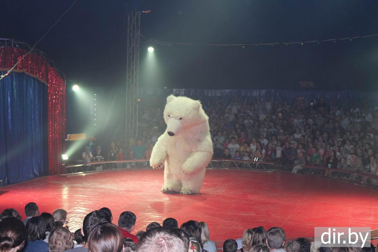 На сцену вышел большой белый мишка.