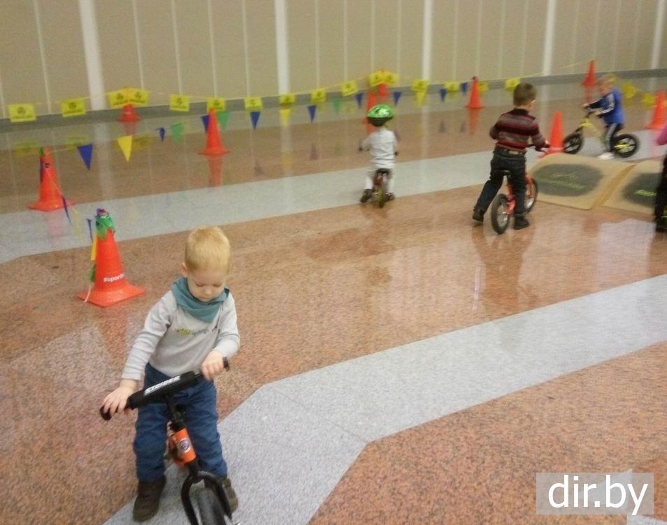 • Ребенок катался на велосипедах внутри выставке на площадке