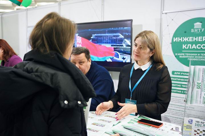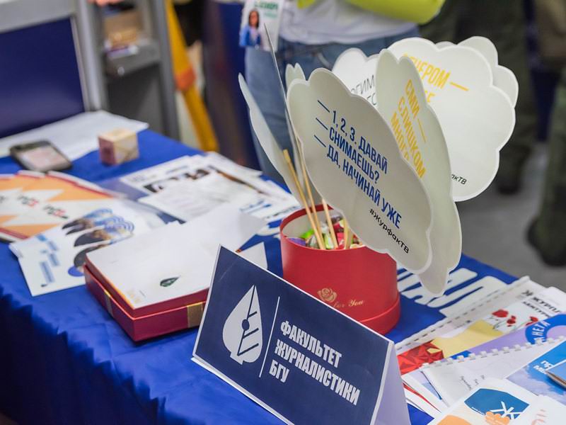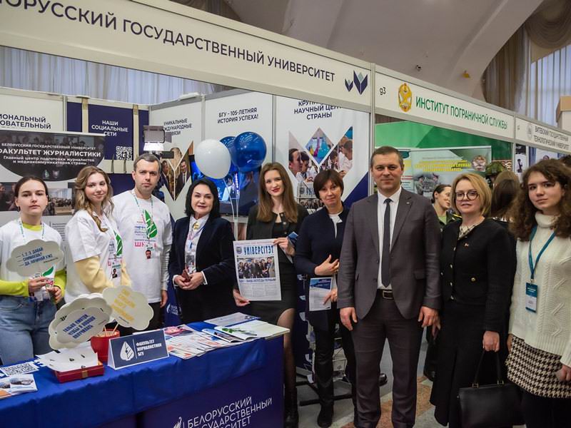На стенде БГУ представлена информация об образовательной деятельности факультетов, институтов, правилах приема, а также профориентационных мероприятиях и подготовительных курсах.