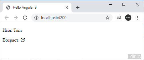 При запуске приложения выражения {{name}} и {{age}} будут автоматически заменяться соответствующими значениями, определенными в компоненте: